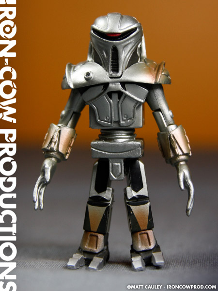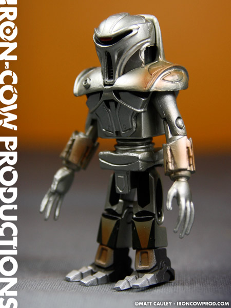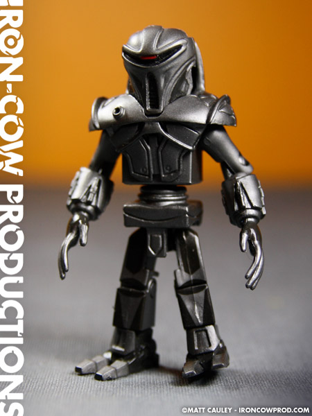My first project at Art Asylum was a fantastic opportunity, but man was it a doozy. I was asked to design a Minimate of the modern era Cylon, from the recently relaunched Battlestar Galactica show. At the time, I hadn’t seen the new show, and I don’t believe anything was out on DVD, so reference material was a little harder to come by. Still, I had received favorable feedback from my “audition” Minimate designs, and the powers that be wanted to see what I could do. In the end, I designed quite a few custom and interchangeable parts for the figure. As I recall, the figure was supposed to come packed with alternate “gun” and “normal” hands. When the figure was eventually released, however, these parts weren’t packed in together, and were spread out across the wave. This initial modern Cylon design got produced as five separate variants, all of which sold out on the initial offering. Out of all of the Minimate designs I have worked on, I believe the modern Cylon had the most mileage. All these years later, you can still find it packed in with the Battlestar Galactica 2-packs still on sale at Toys R’ Us.