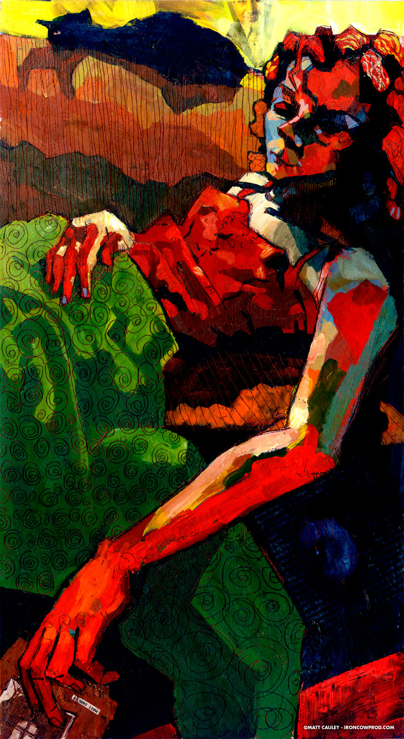 "Slumber" Acrylic on panel. 10 x 20 inches. Painted 2003 by Matt 'Iron-Cow' Cauley.